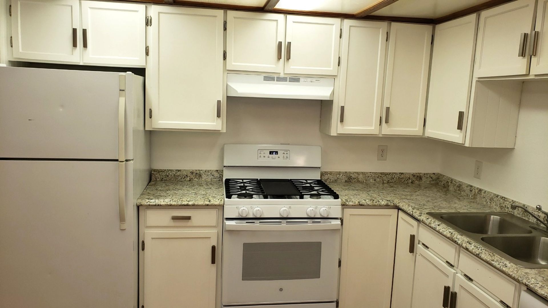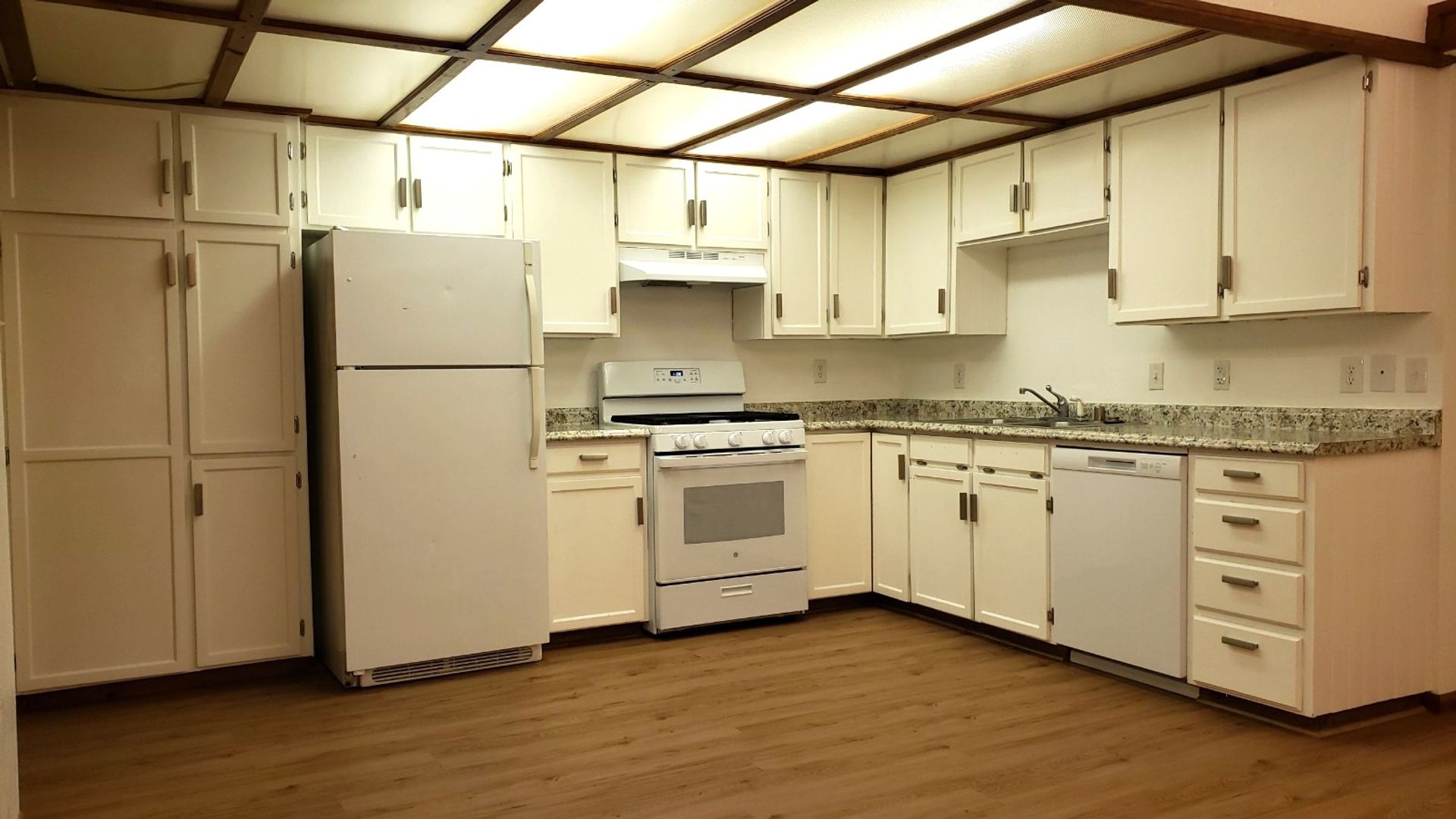 Step into a spacious living environment with an open floor design seamlessly connecting the living area and kitchen. The kitchen boasts ample storage within its wood cabinets and, to the delight of any chef, features a GAS stove – a distinctive and cost-efficient touch.