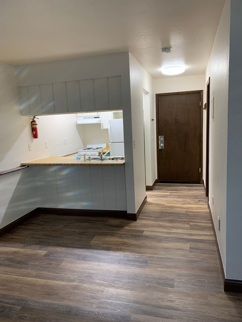 Walk into this first floor corner unit and feel right at home, it features a full size kitchen on the right hand side and bathroom on the left. It has a spacious open living area with wood type flooring, other upgrades and a walk in closet.